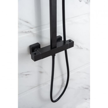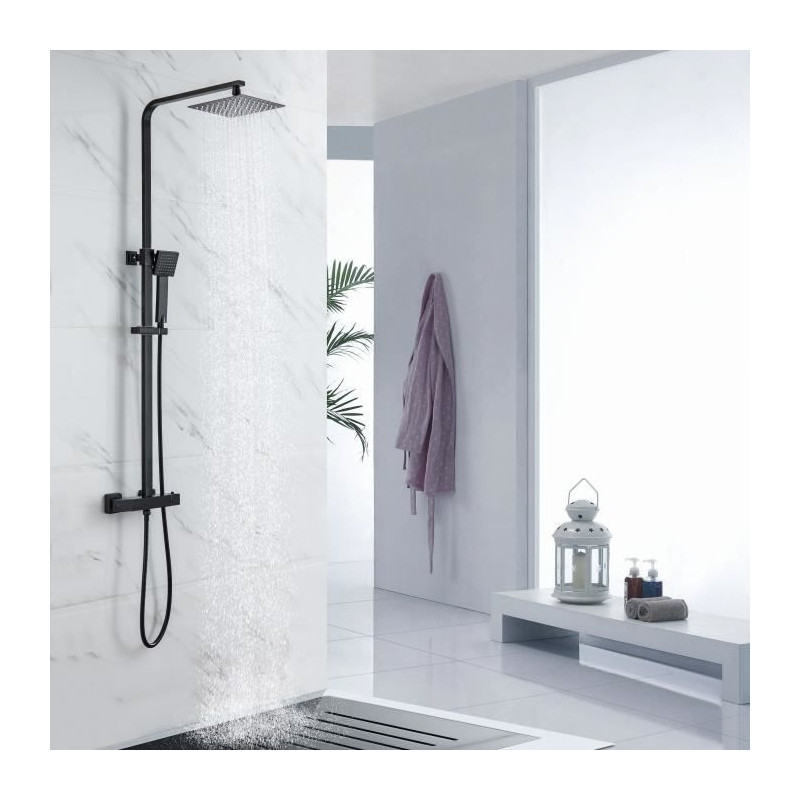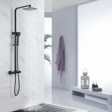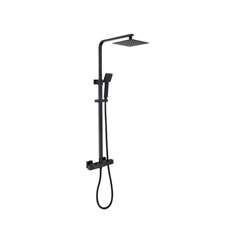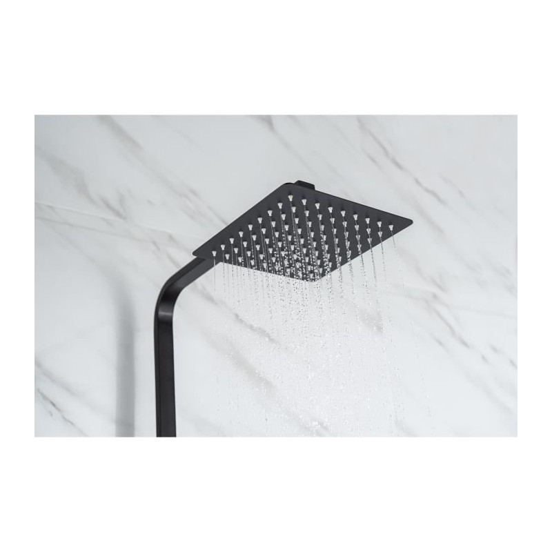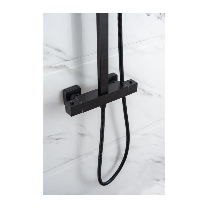 Colonne de douche OCEANIC - Mitigeur thermostatique - Pomme haute carrée 20x20 cm - Noir mat