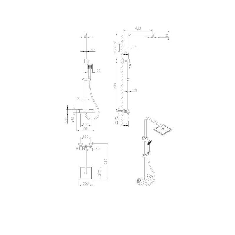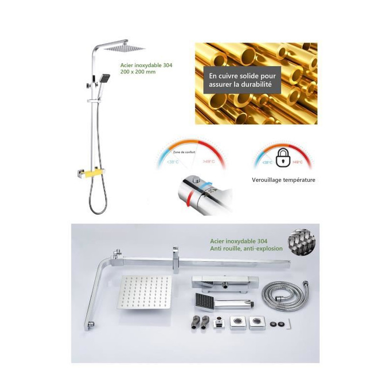 Ensemble de douche thermostatique - CERATHERM T50 - barre...