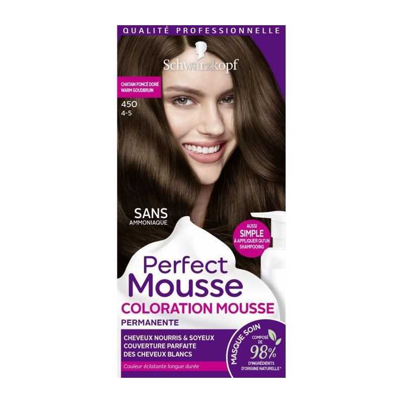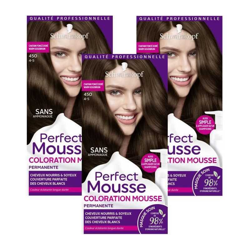 SCHWARZKOPF Perfect Mousse - Coloration Cheveux - Mousse permanente sans Ammoniaque - Châtain Foncé Doré 450 - Lot de 3
