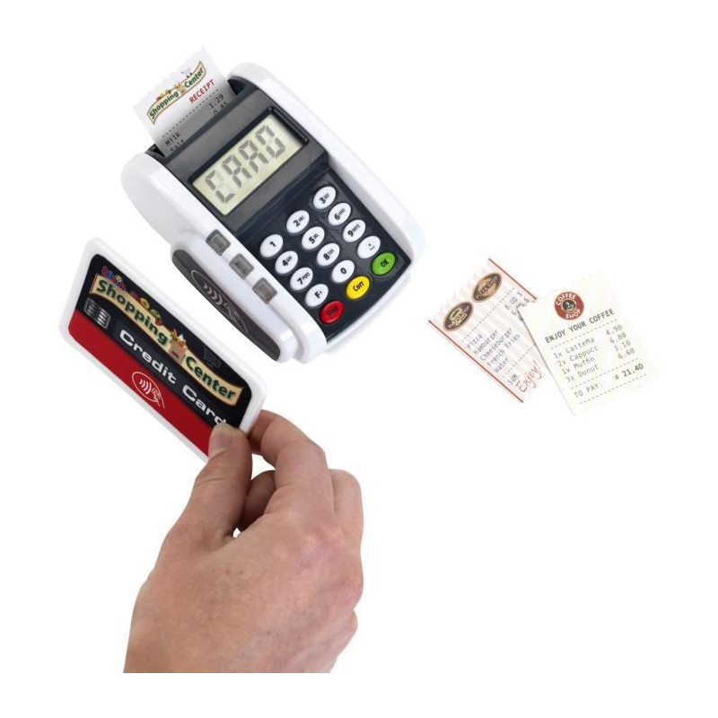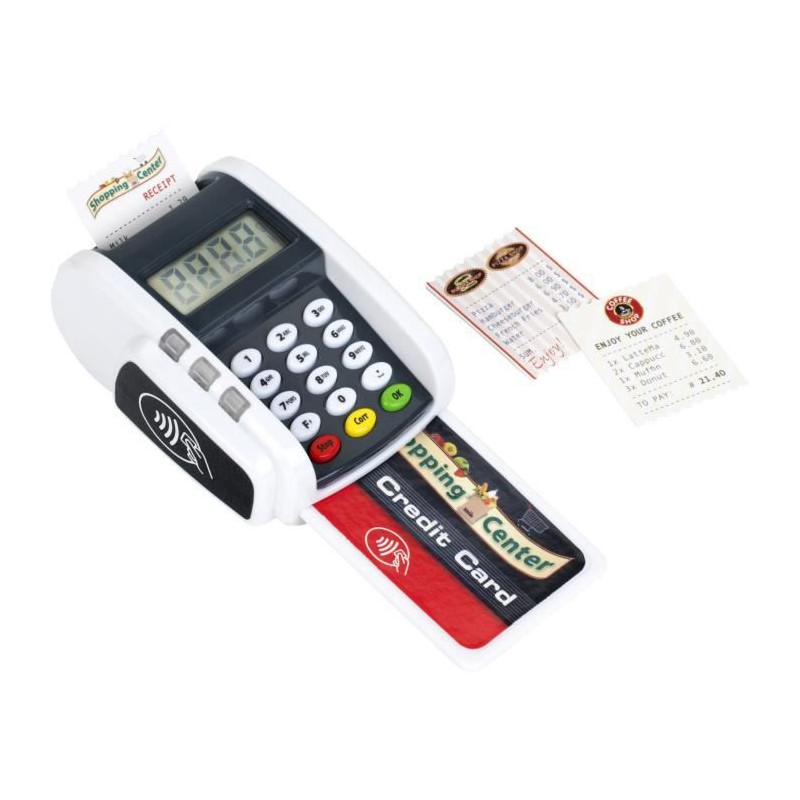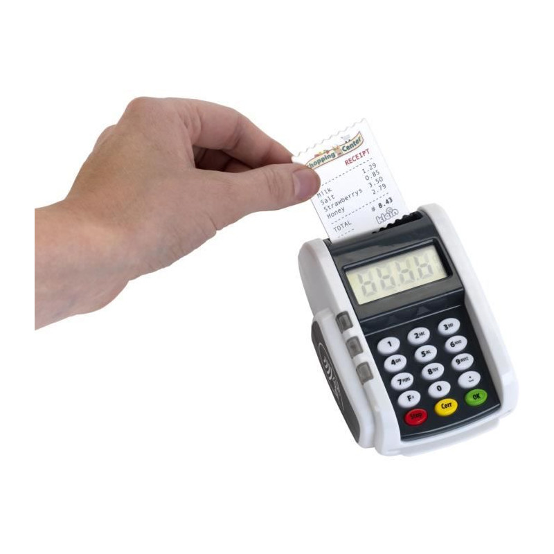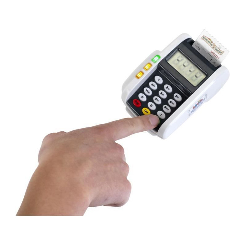 Ce terminal de paiement Shopping Center est une reproduction tres fidele de ceux utilisés de nos jours dans le commerce et la restauration. Il dispose de fonctions tres réalistes et ludiques : fonction sonore, fonction lumineuse et fonction paiement sans contact.