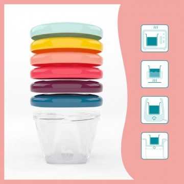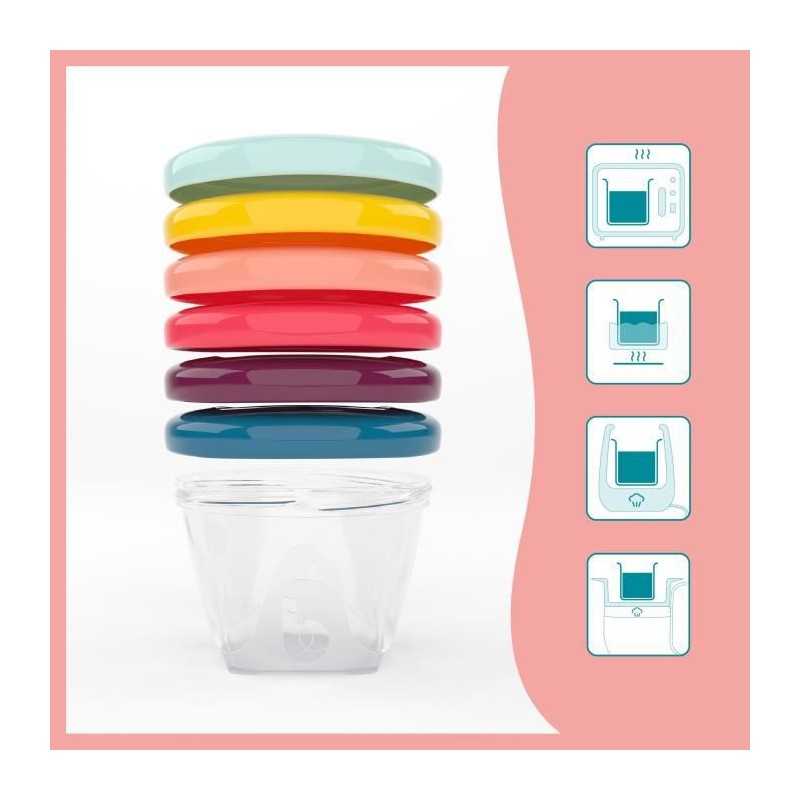 Les kits parfaits pour la diversification alimentaire. Pratique pour conserver et transporter les repas de bébé. Matiere transparente et surface réinscriptible pour noter la recette conservée. Couvercle vissé pour une fermeture 100% hermétique. Facile a nettoyer.