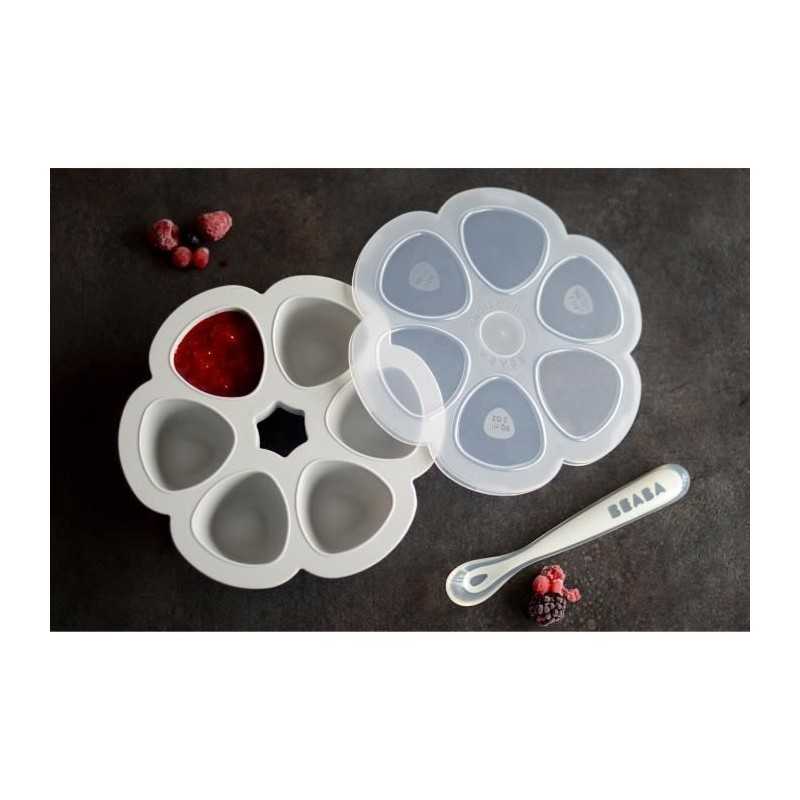 MULTIPORTIONS SILICONE : Silicone de qualité premium, 6 alvéoles indépendantes. 6x90 ml Solution gain de temps : préparation de 6 portions en une seule fois. Permet de décongeler la quantité de nourriture adaptée en fonction de l'âge et de l'appétit de bébé.