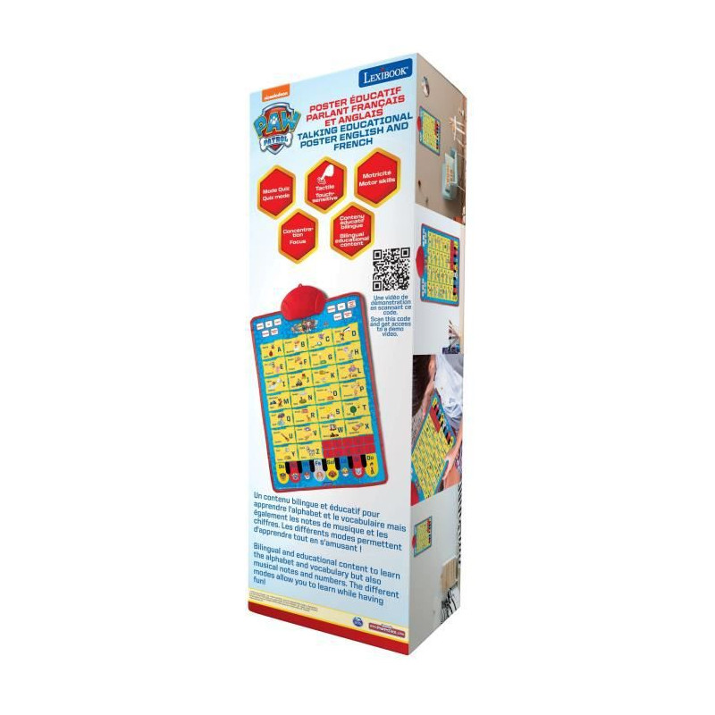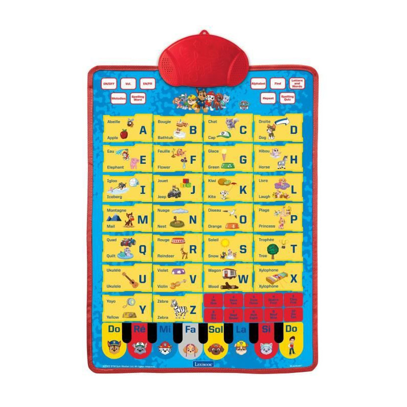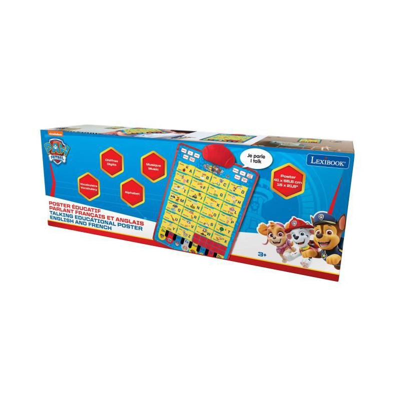 Un poster éducatif parlant bilingue FR/EN, pour apprendre l'alphabet, du vocabulaire et l'orthographe avec La Pat'Patrouille !