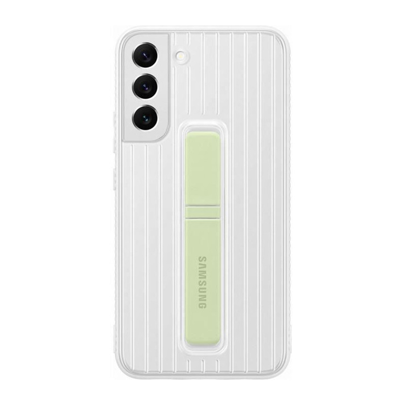 Le Protective Standing Cover G S22+ Blanc est un étui pratique et élégant qui protégera votre téléphone des rayures, chutes ou autres dommages. Une protection générale pour le Samsung Galaxy S22+. Conçue avec une matière durable et robuste, mais légère à la fois, cette coque offrira aux utilisateurs les meilleurs niveaux de soutien possible en termes de solidité et durabilité. Les bords surbaissés procurent une excellente adhérence pendant que vous manipulez votre appareil mobile sans craindre qu'il glisse accidentellement entre vos doigts. L'intèrieur doux se dégage facilement afin que votre smartphone soit parfaitement adaptée à sa forme unique au quotidien - pas besoin de sacraimenter ou tirer pour retirer/insèrer correctement le dispositif ! De plus , il dispose d’un stylus intuitif intacgrtE: Le stylet tactile peut être rangée dedans commodeument alors qu'elle ne sera pas inutilisable . Disponible en blanc brillante finition mate trs attirantes Cet Etui Protecteur Debout Convient Parfaitemetn Pour Emmener Votrea Smartphone Partou Avec Succss!