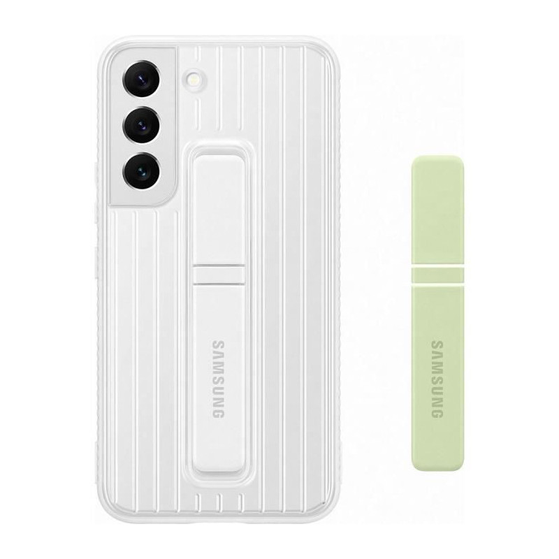 rotégez votre appareil Samsung Galaxy S22 avec le nouveau Protective Standing Cover G à la couleur blanche. Grâce à sa conception ergonomique et ses fentes pratiques, vous pouvez facilement adapter l'angle de visualisation pour un confort optimal tout en offrant une protection maximale contre les chocs, rayures et autres dommages causés par des objets extérieurs. La coque est également dotée d'un revêtement anti-empreinte qui empêche l’accumulation de saletés sur son surface afin que vous puissiez toujours garder votre smartphone comme neuf !