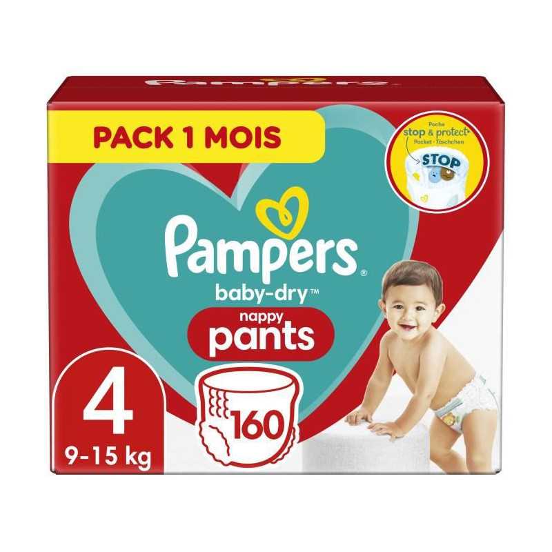 PAMPERS Baby-Dry Pants Taille 4 , 9-15kg, 160 Couches - Pack 1 Mois