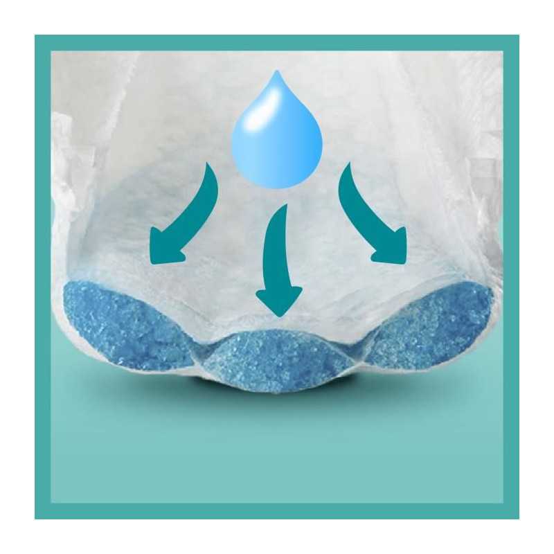 Les couches-culottes Pampers Baby-Dry Pants offrent jusqu'a 12 h de protection intégrale contre les fuites grace a la combinaison d'une poche révolutionnaire Stop & Protect et un maintien complet 360°. Elles possedent également un coeur ultra absorbant qui absorbe instantanément l'humidité et une double barriere anti-fuites qui aide a éviter les fuites autour des jambes. Lorsque votre bébé commence a gigoter pendant l