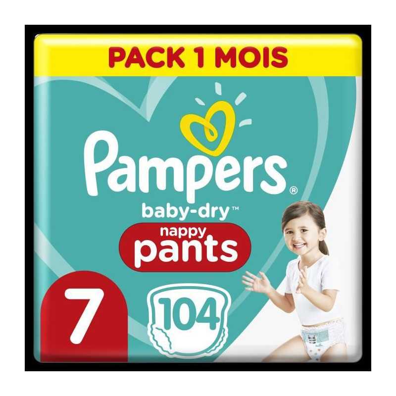 PAMPERS Baby-Dry Pants Taille 7, 17+kg, 104 Couches Pack 1 Mois