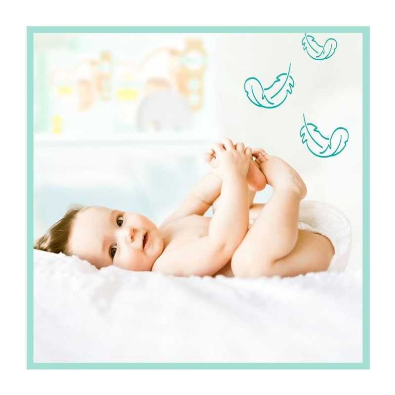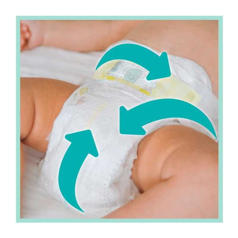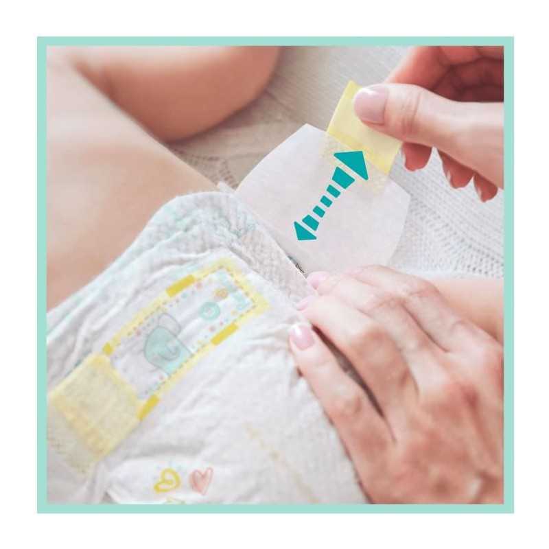 Les couches Pampers N°1 pour le confort et la protection des peaux sensibles. Un contact prolongé avec l'humidité et les selles molles peut affecter l'état de la peau sensible de votre bébé, ce qui peut etre une source d'inconfort ou de malaise. Testées dermatologiquement et ne contiennent aucun des 26 allergenes.