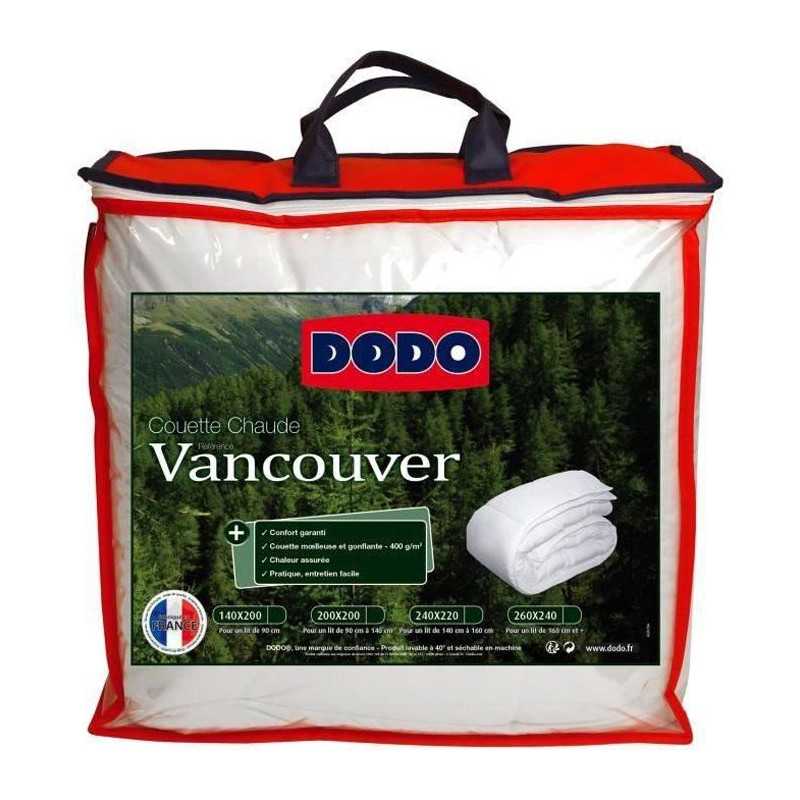 DODO - Couette chaude VANCOUVER - 2 personnes - 220x240 Couette blanche - Douce et confortable - Fabriqué en France Vous etes a la recherche d'une couette douce, chaude et confortable ? DODO a ce qu'il vous faut ! La couette VANCOUVER sera idéale pour vous, en plus de ses qualités de confort et de chaleur , son enveloppe en polycoton lui permet de résister dans le temps.