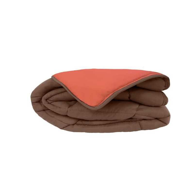 CALGARY Couette chaude Microfibre 400g/m² Chocolat & Corail 140x200cm
