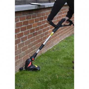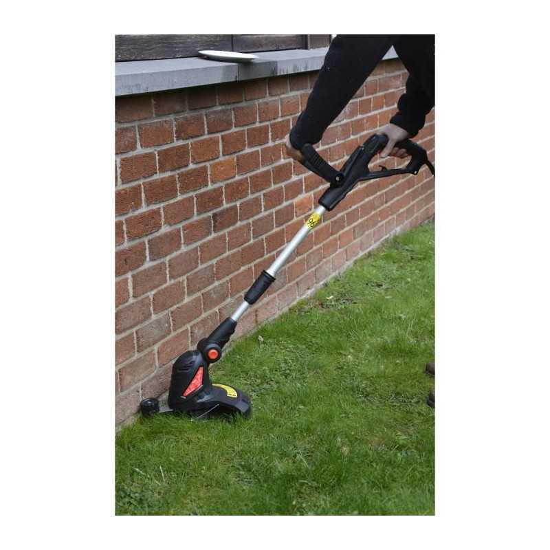 Coupe-bordures électrique - Puissance : 550 W - Largeur de coupe : 300 mm - Systeme de coupe : automatique - Diametre du fil : 1,6 mm - Longueur du fil : 6 m - Manche télescopique : 20 cm - Fonction dresse-bordure - Tete orientable 5 positions - Roulette de guidage - Réglage de la 2e poignée de maintien.