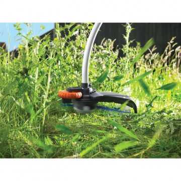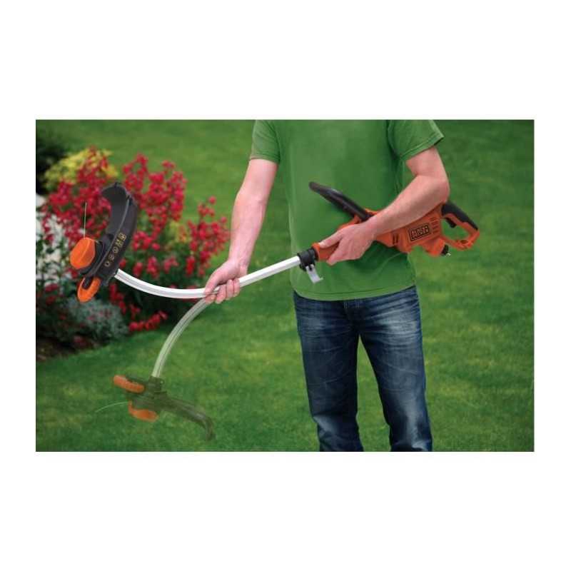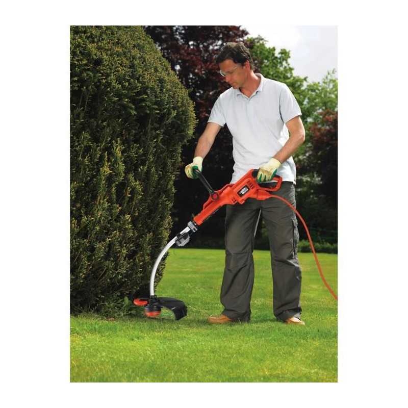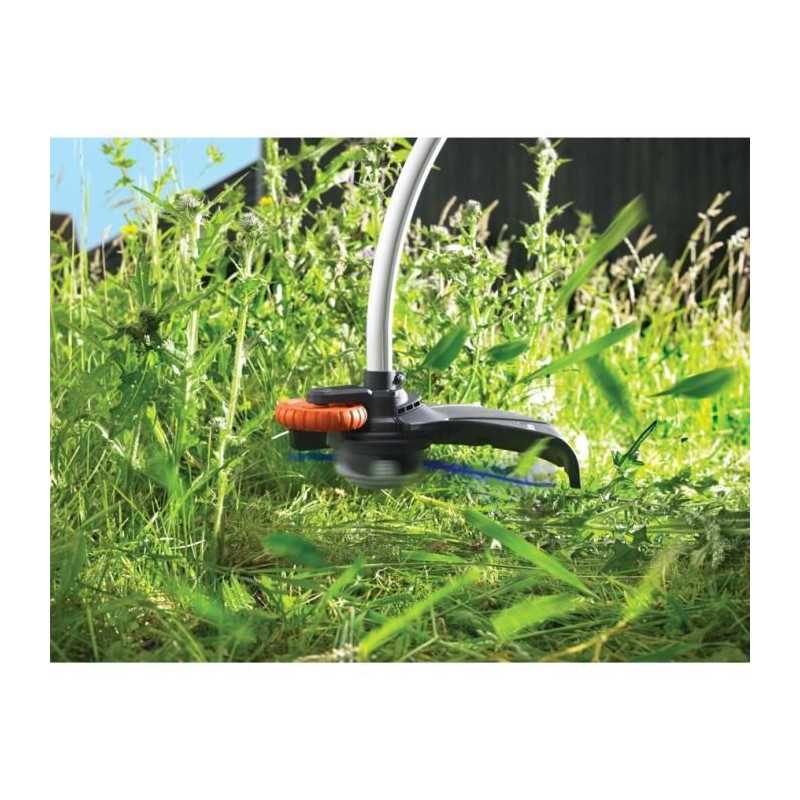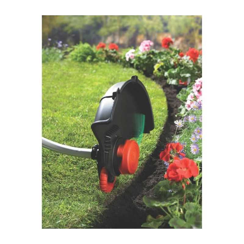 " Moteur de 800W positionné en haut pour une meilleure ergonomie - Transmission bi-étagée par pignons E-Drive® - Fonction dresse bordure - Tete pivotante a 180° - Poignée ajustable sur 5 positions - Prise intégrée et retenue du câble pour soutenir les efforts de traction sur le câble et éviter que l'outil ne se débranche"