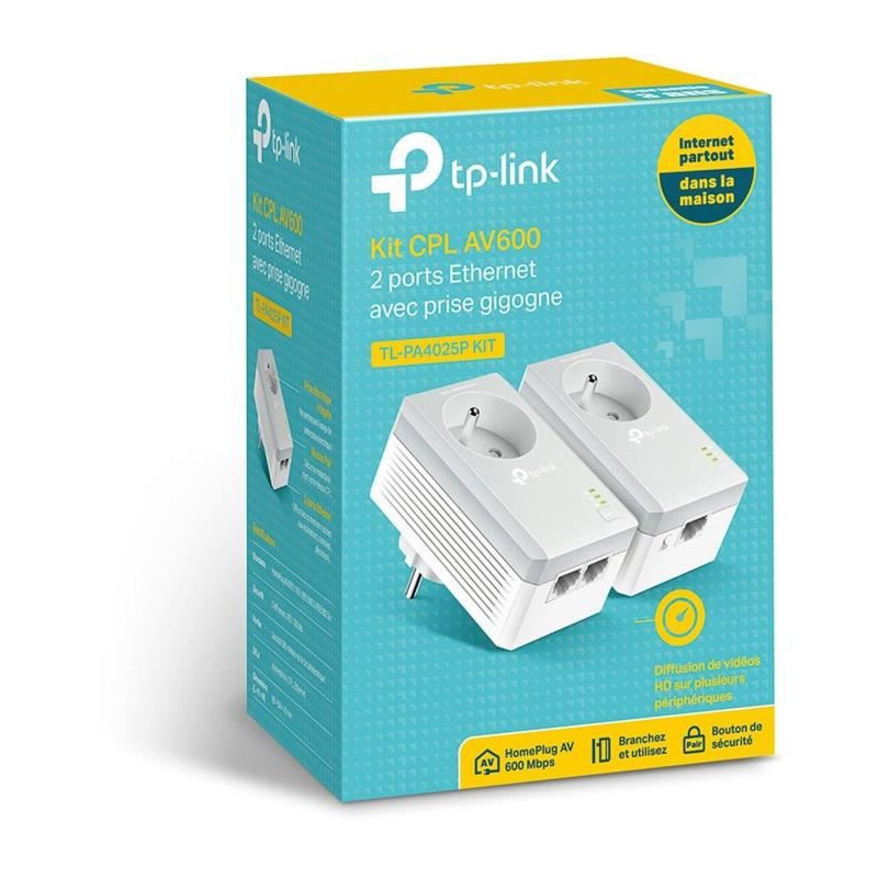 TP-Link TL-PA4025P KIT CPL 600 Mbps avec Prise Intégrée et Ports Ethernet