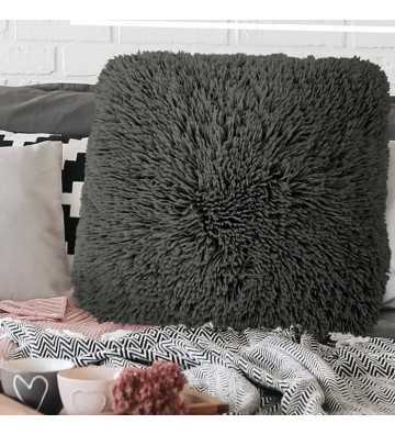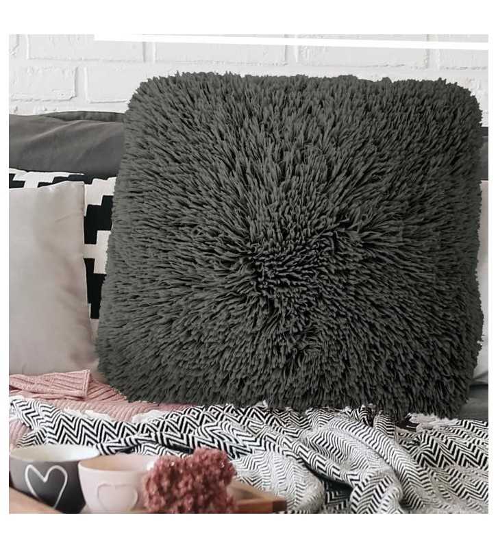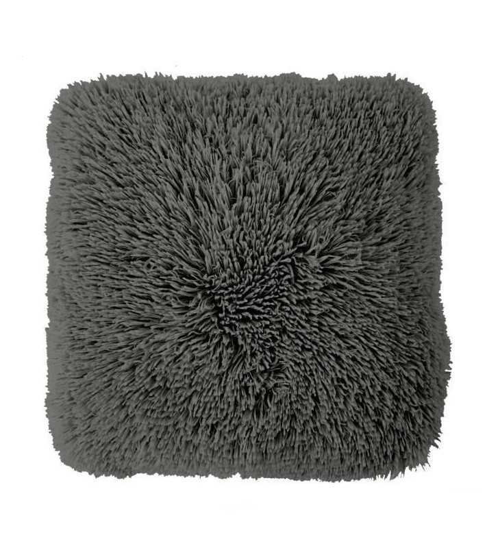 Coussin gris foncé, extra-doux, reffet fourrure sur les deux faces