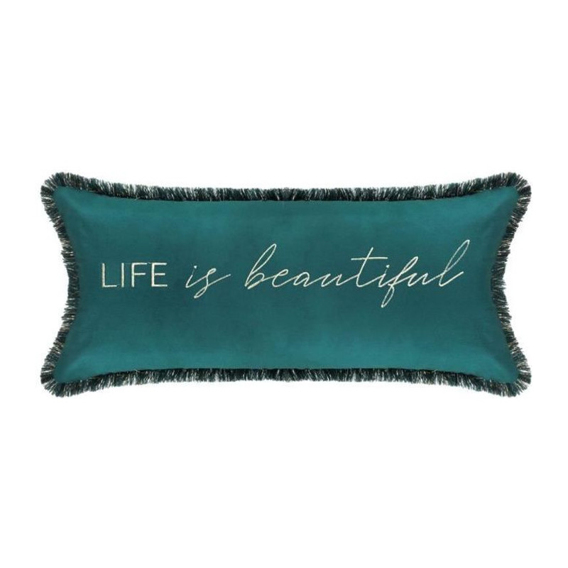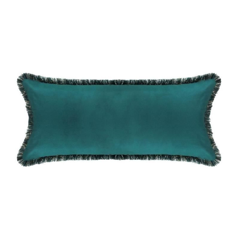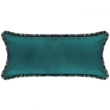 Coussin Velours brodé Feel Polyester - 25x58 cm - Bleu Canard