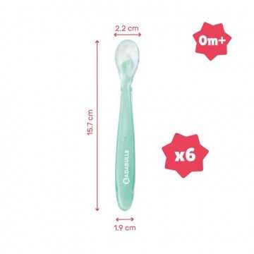 Embout souple pour les premiers repas de bébé - Manche long et solide - Taille adaptée aux petites bouches et prise en main facile - Garanties sans BPA - Passent au lave-vaisselle
