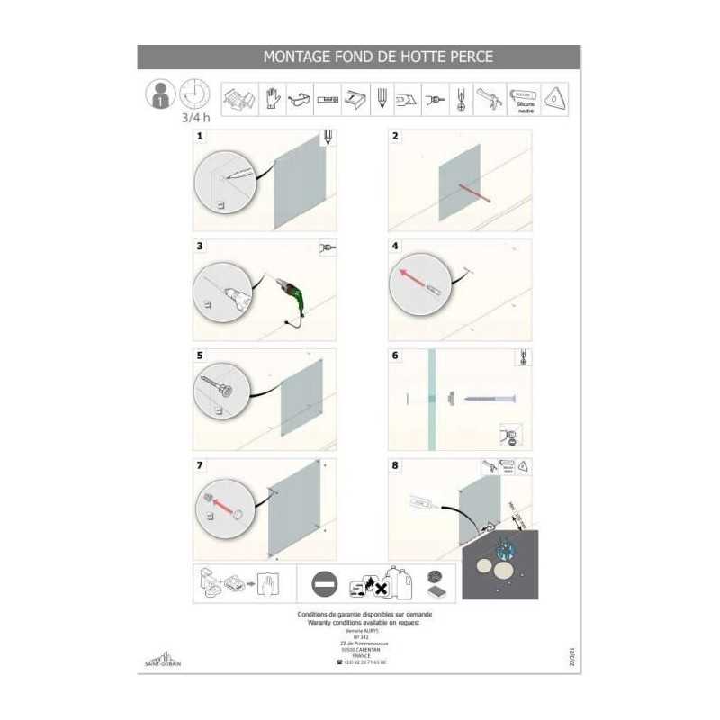 Fond de hotte - verre de sécurité trempé selon EN12150. Fabrication française Saint-Gobain