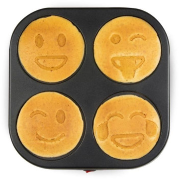Crépiere pour 4 petites crepes.. Motifs EMOJI. Plaque de cuisson avec revetement anti-adhésif. Interrupteur marche/arret. 600w