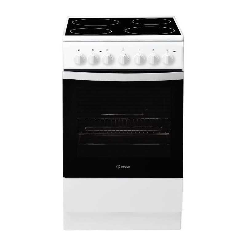 INDESIT IS5V4PHW/E - Cuisiniere, Blanc, Table Vitrocéramique, 50cm, 4 zones de cuisson, Manettes, Four CN, Hydrolyse, 61L