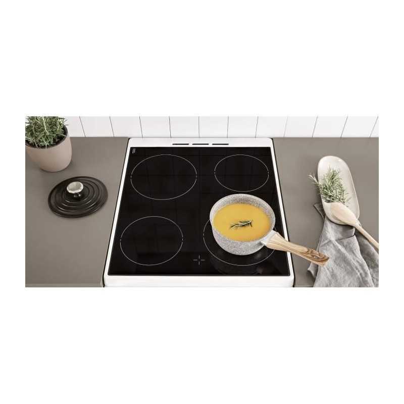 Cuisiniere, Blanc, Table Vitrocéramique, 50cm, 4 zones de cuisson, Manettes, Four CN, Hydrolyse, 61L