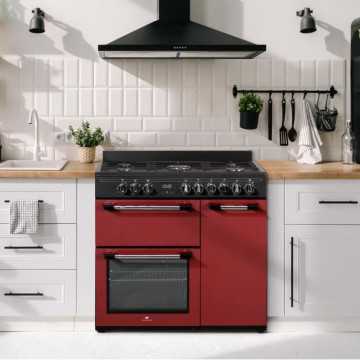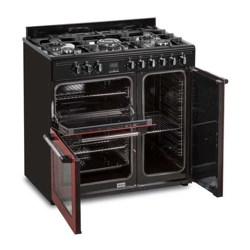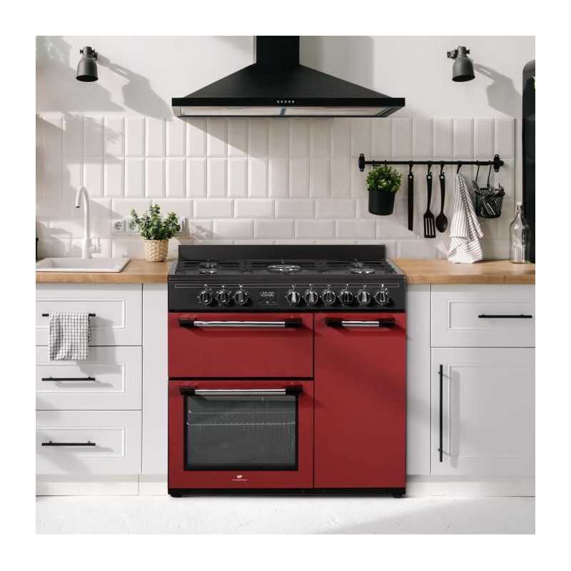 CONTINENTAL EDISON Cuisiniere piano gaz 3 fours électriques bordeaux largeur 90 cm