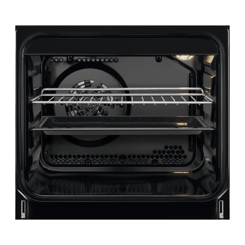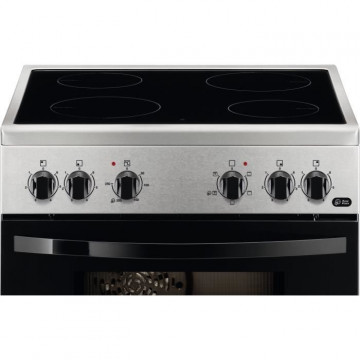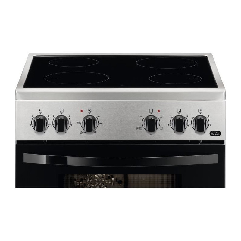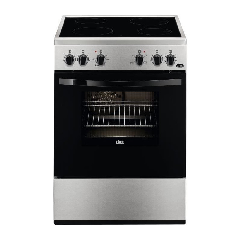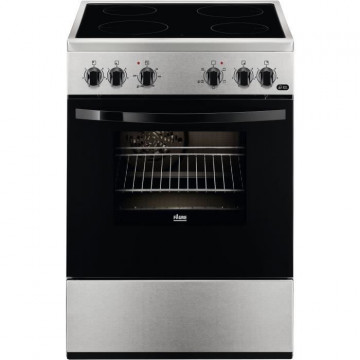 Cuisiniere 60x60 Vitrocéramique - 4 Foyers Hi-Light - Commandes par manettes - Four Multifonction - Eclairage intérieur - Grilloir Electrique 1650 W - Classe efficacité énergétique A - Cavité 54 L - Porte plein verre - 1 plat multi-usages - 1 grille support de plat - Inox - Livrée sans cordon et sans prise