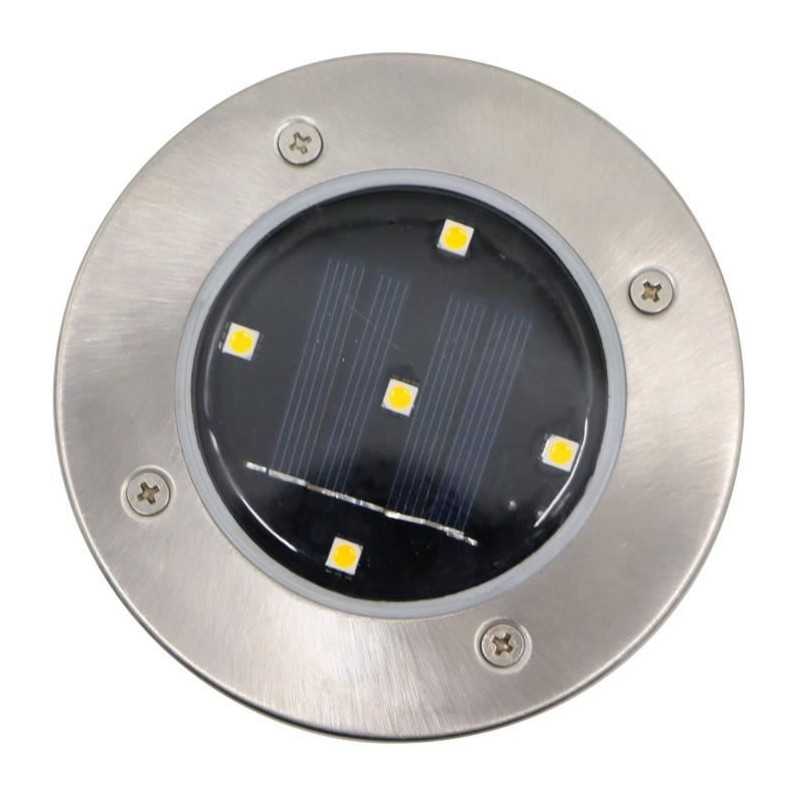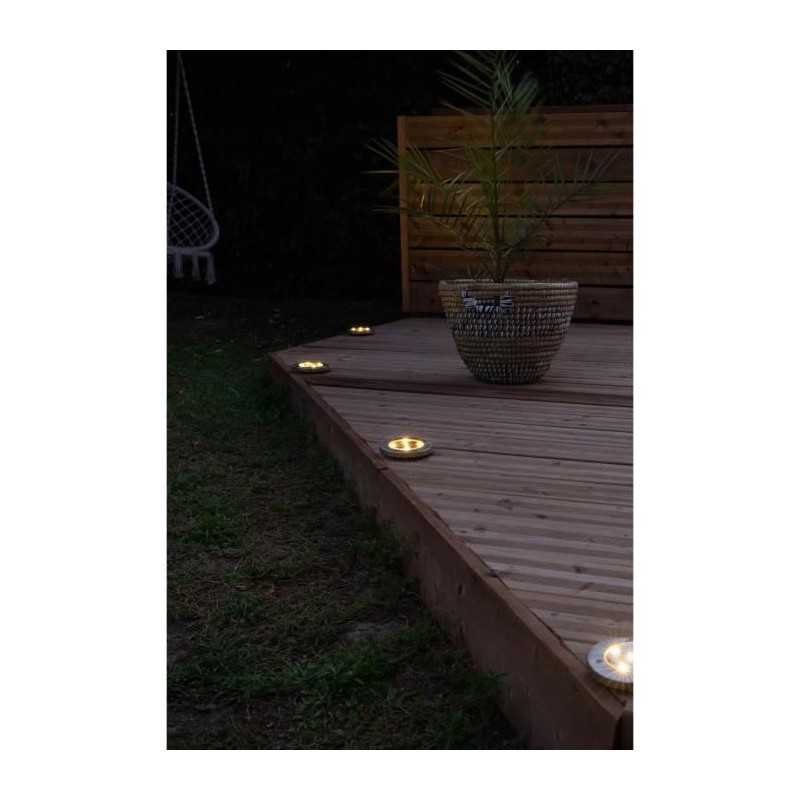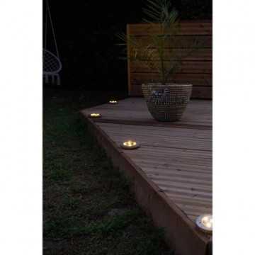GALIX Lot de 3 spots encastrables a énergie solaire en inox - 0,07 w - Nombre de Lumens : 5 - Durée maximum d'éclairage : 8 heures - Interrupteur on/off- 5 LED blanches SMD par spot - 1 x 300mAh Ni-Mh AA