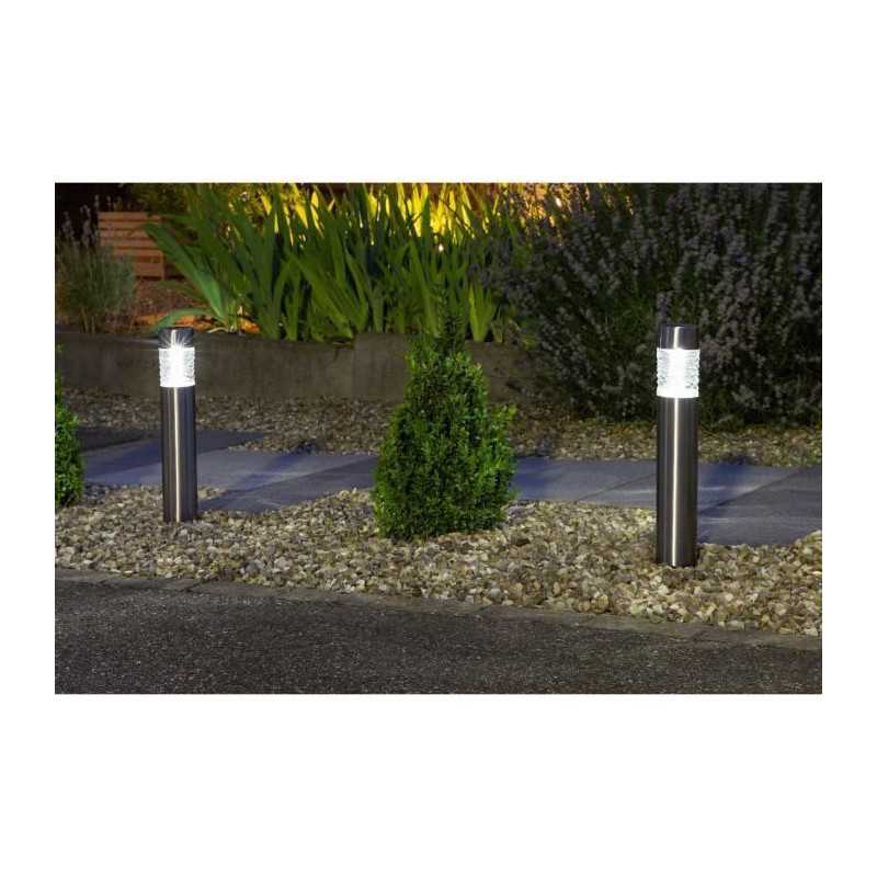 GALIX Borne a énergie solaire en inox - 0,13 w -Nombre de Lumens : 10 - Durée maximum d'éclairage : 8 heures - 1 LED blanche - 0,2W - 1 x 600mAh Ni-Mh AA