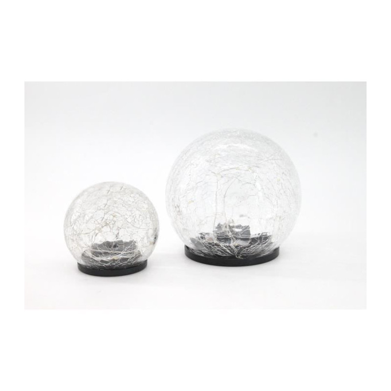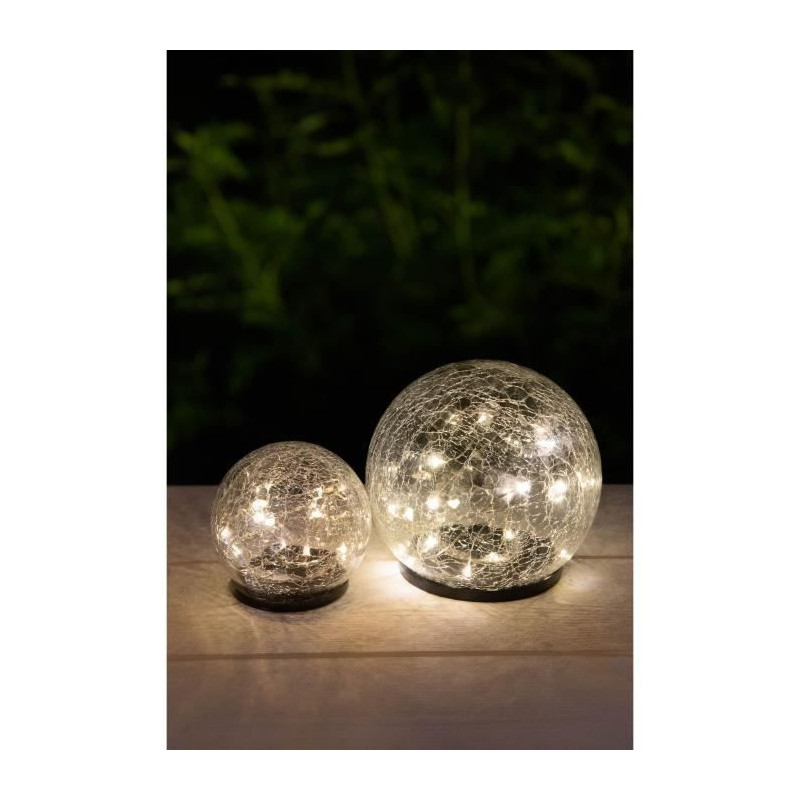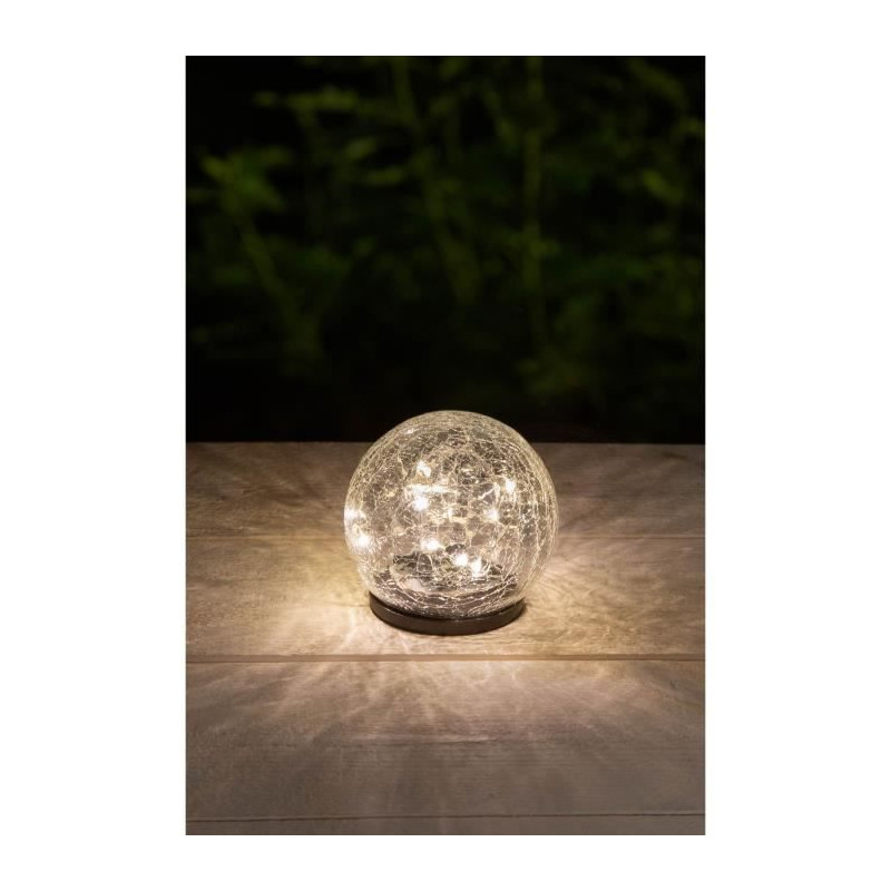 GALIX Sphere solaire en verre - Effet verre brisé - Ø 10 cm - 0,10w - Durée maximum d'éclairage : 8 heures - Nombre de Lumens : 10 - Interrupteur on/off - 15 LED blanches - 1 x 300mAh Ni-Mh AAA