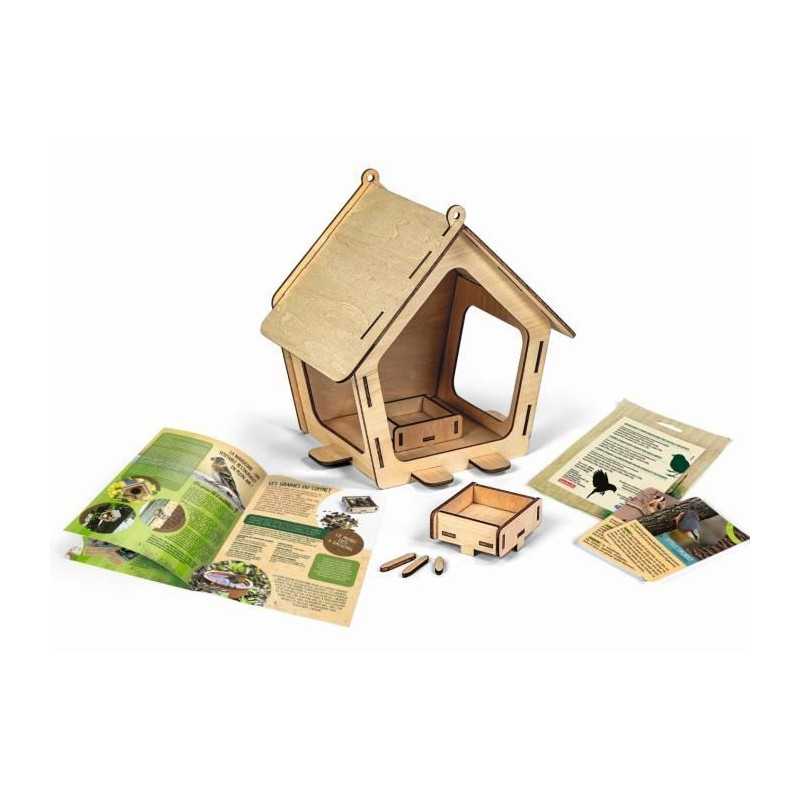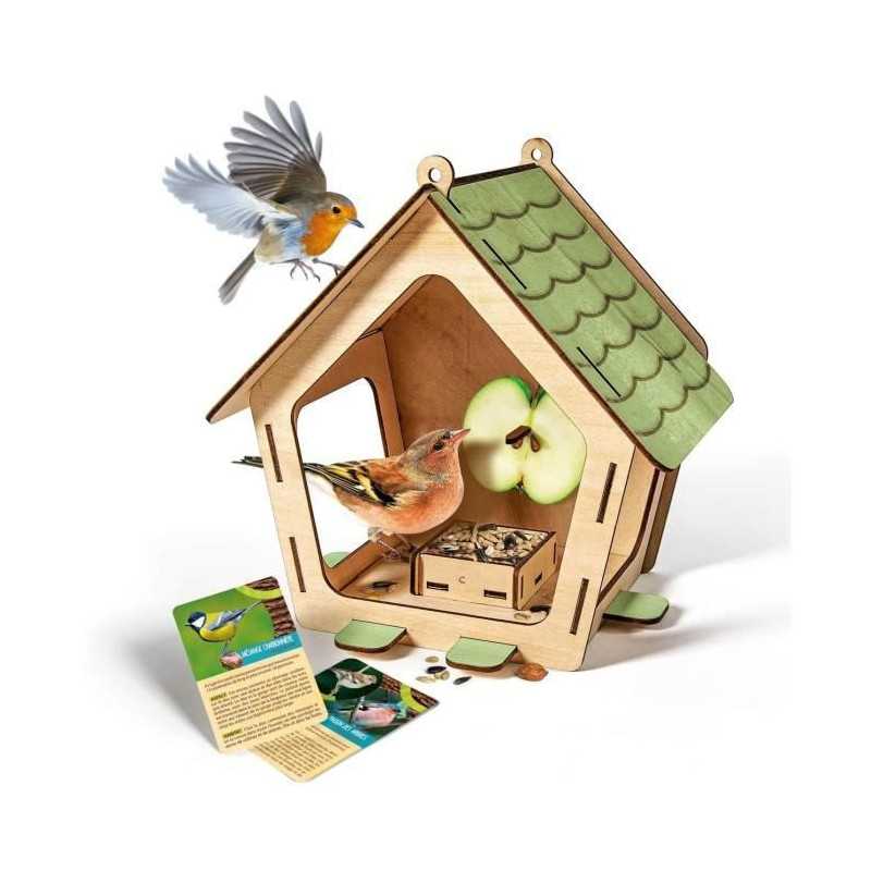 Une véritable mangeoire a oiseaux en bois a assembler et a décorer. La mangeoire a oiseaux permettra a l'enfant d'observer différents types d'oiseaux et de les attirer avec leur graine préférée !