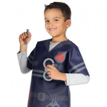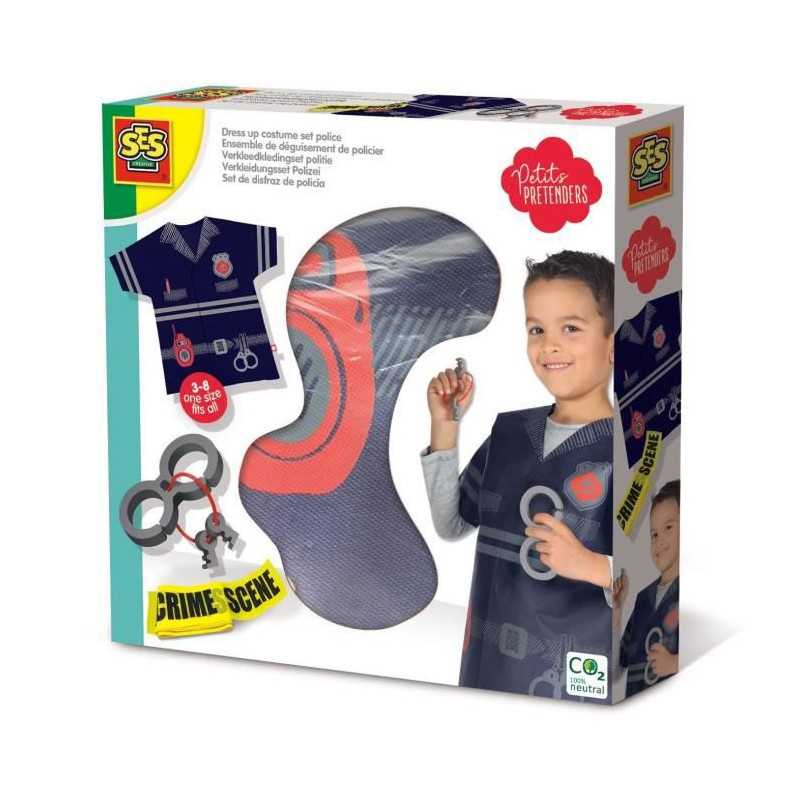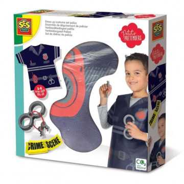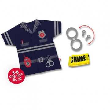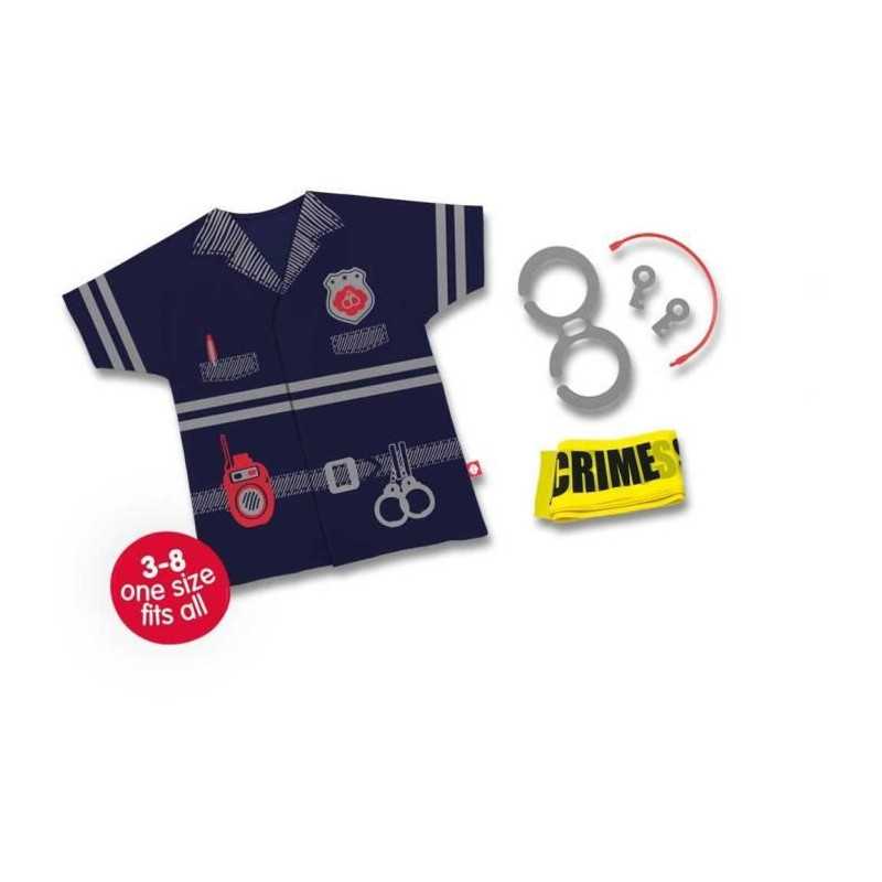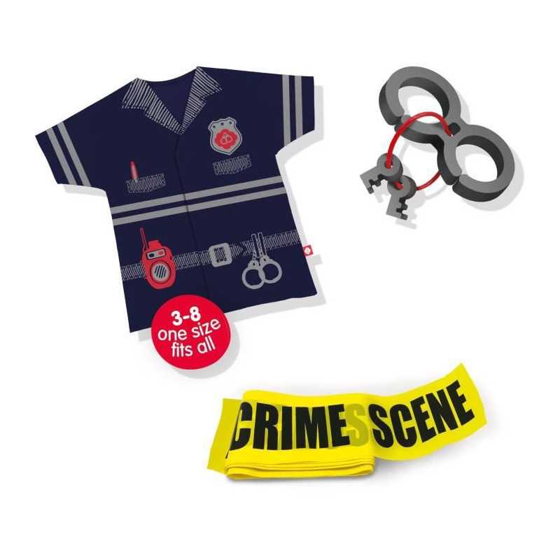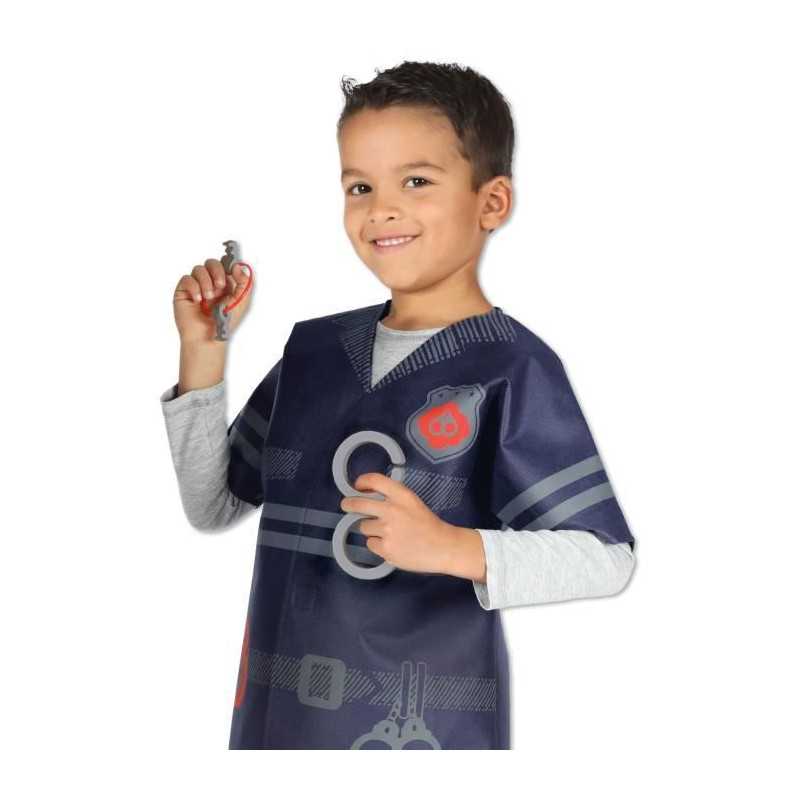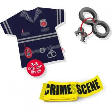 Un cambriolage a eu lieu au supermarché. Enfile ta veste de policier, prends tes menottes et trouve le coupable ! Tu as établi un périmetre de sécurité autour du supermarché avec du scotch « Scene de crime » pour pouvoir enqueter. Taille unique de 5 a 8 ans.