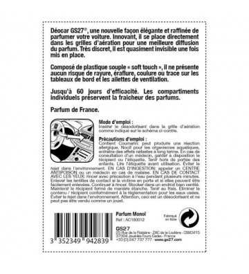 Le GS27 Deocar Origin Monoi est un produit 2 en 1 qui vous offre une solution pratique et efficace pour prendre soin de votre voiture. Ce kit comprend un déodorant pour l'intérieur de la voiture et un nettoyant pour les vitres, tous deux à base d'huile de monoï. Le déodorant élimine les odeurs désagréables et laisse une agréable senteur florale, tandis que le nettoyant pour vitres permet de nettoyer en profondeur les vitres sans laisser de traces. Ce produit est facile à utiliser et vous offrira des résultats impeccables en un rien de temps.