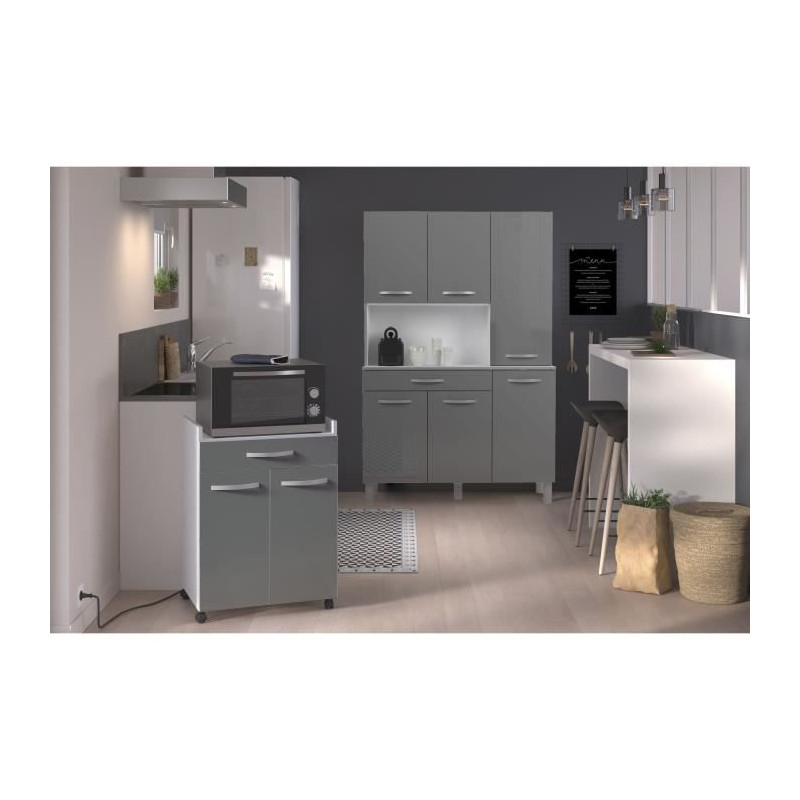 OSLO Desserte de 60 cm - 1 Tiroir et 1 Porte - L 60 x P 44 x H 81 cm - Coloris Gris brillant - EKIPA
