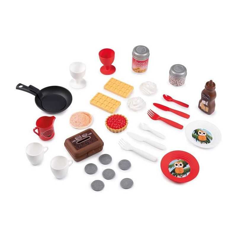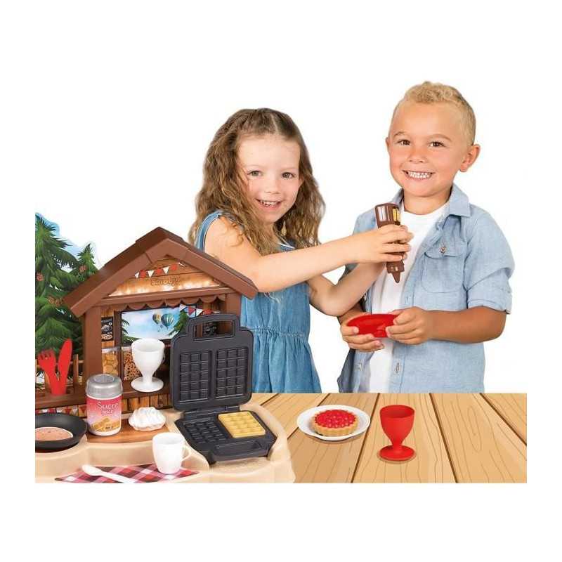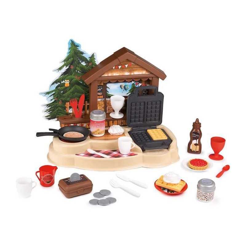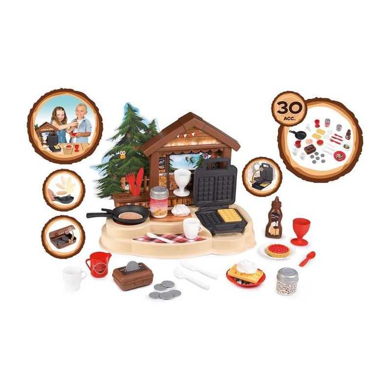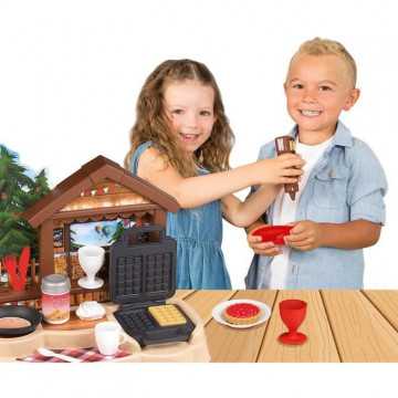 _x000D_ Retrouve la magie de noël avec cette petite marchande dans le style "chalet hivernal"._x000D_ Elle est composée d'un gaufrier et d'une plaque de cuisson._x000D_ 30 accessoires sont inclus pour agrémenter les fonctions de jeu : 1 pot a chocolat chaud, des factices gourmands (1 crepe, 1 tartelette, 2 chantilly, 2 gaufres), 1 sauce