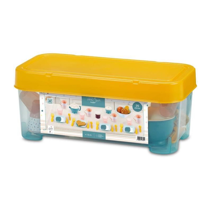 Un coffret translucide garni d'une dinette aux couleurs douces et aux motifs graphiques délicats pour une table élégante. Ce produit de la gamme VERT AZUR s'inscrit dans une démarche éco-responsable. 35 pieces. Des 18 mois. Origine France Garantie