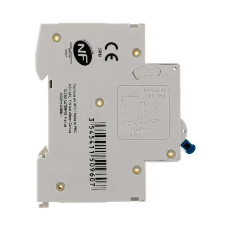 Dijoncteur HBF pour tableau électrique, avec bornes a vis. Pouvoir de coupure : 3.5 KA. Alimentation : 230 V. Accepte tous les peignes de raccordement standard