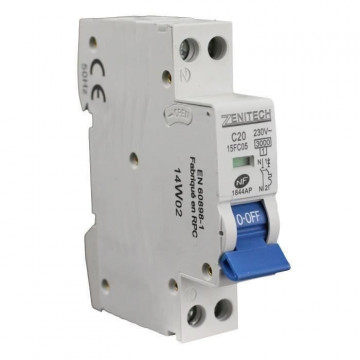 Dijoncteur HBF pour tableau électrique, avec bornes a vis. Pouvoir de coupure : 3.5 KA. Alimentation : 230 V. Accepte tous les peignes de raccordement standard