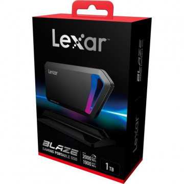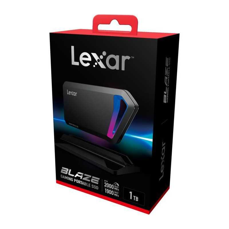 Disque SSD externe portable Lexar 1To avec LED intégré. Elegant, compact et résistant cet SSD Portable est livré avec un étui et un dock. Ultra rapide jusqu'a 2000Mo/s en lecture et 1900Mo/s en écriture. Logiciel de sécurité avancé avec cryptage AES 256 bits inclus. Equipé d'un connecteur de type USB-C. Livré avec 2 cables (Type-C vers Type-C et Type-C vers USB A standard.