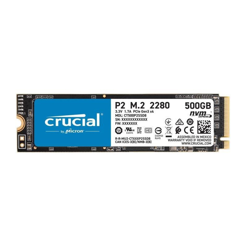 CRUCIAL - SSD Interne - P2 - 500Go - M.2 Nvme (CT500P2SSD8)