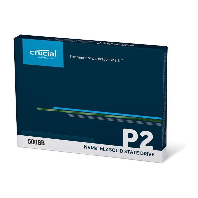SSD Crucial P2 Que vous soyez au travail, en plein jeu ou en déplacement, les démarrages lents peuvent se révéler frustrants. Heureusement pour vous, le SSD Crucial® P2 est la. Avec d'importantes capacités de stockage et des performances bénéficiant de la derniere technologie NVMe(TM), le P2 dispose de la vitesse et de la fiabilité indispensable pour libérer le potentiel de votre ordinateur.