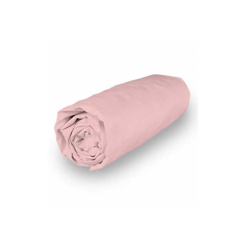 Drap housse Camille - Percale en 100% coton tissé serré 80 fils/cm² - 90 x 190 cm - Rose - Bonnet de 30 cm, s'adapte a tous les matelas - Lit 1 personne - Teinture réactive - Lavable en machine a 60°C.