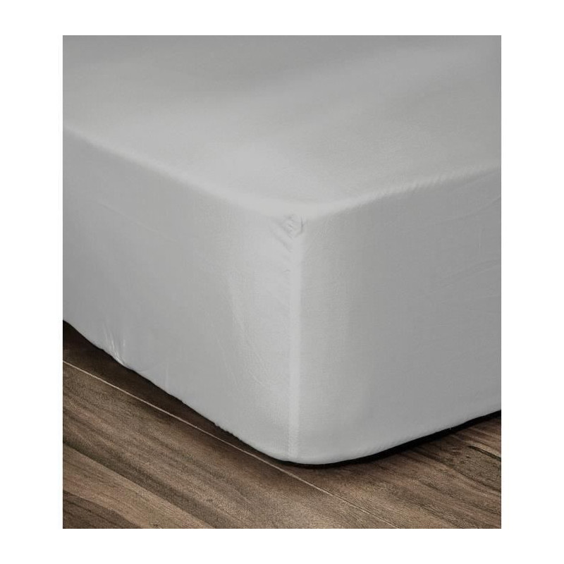 LOVELY HOME Drap Housse 100% coton 90x190x30 cm gris clair