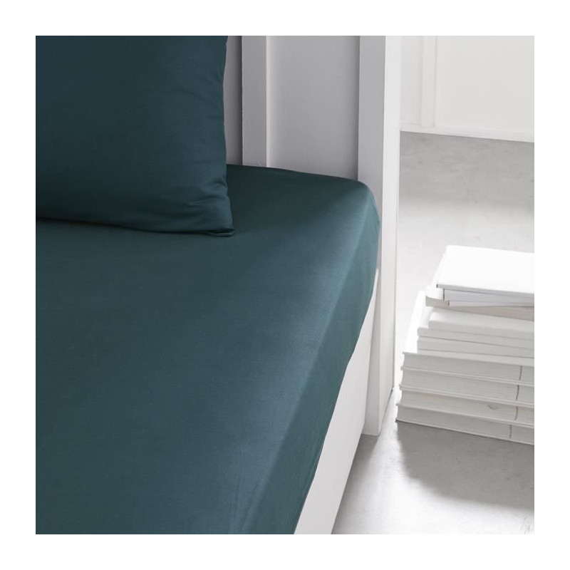 Drap housse TODAY Essential - 160 x 200+30 cm - 2 personnes - 100% Coton uni - Paon