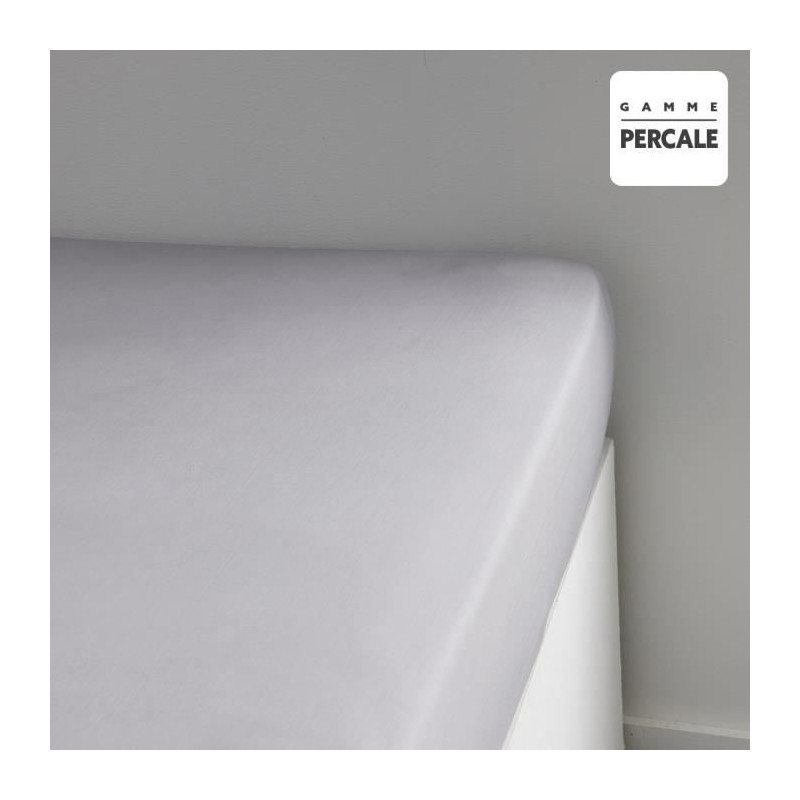 Drap housse TODAY Prestige - 140 x 200+30 cm - 2 personnes - 100% Percale de coton uni - Acier