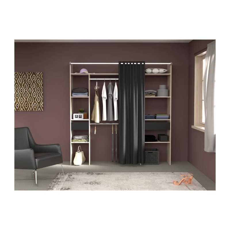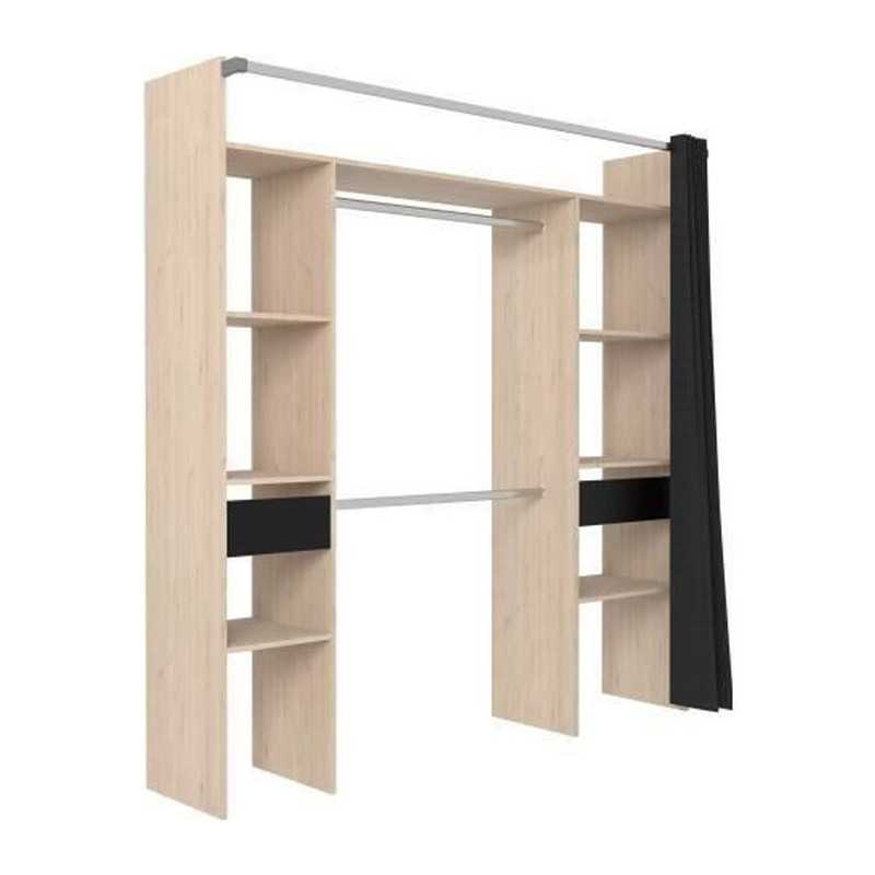 EKIPA Kit dressing avec rideau - Décor Chene et noir - 1...