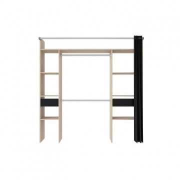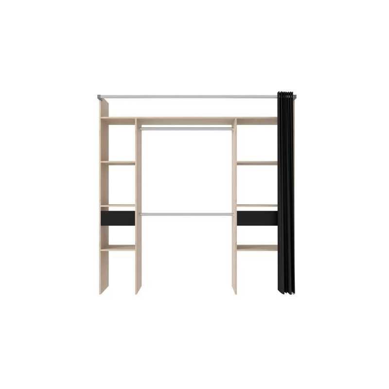 Kit dressing ARTIC avec rideau - Décor Chene et noir - 2 colonnes + 2 penderies + 2 tiroirs - L 198 x P 48 x H 203 cm - EKIPA