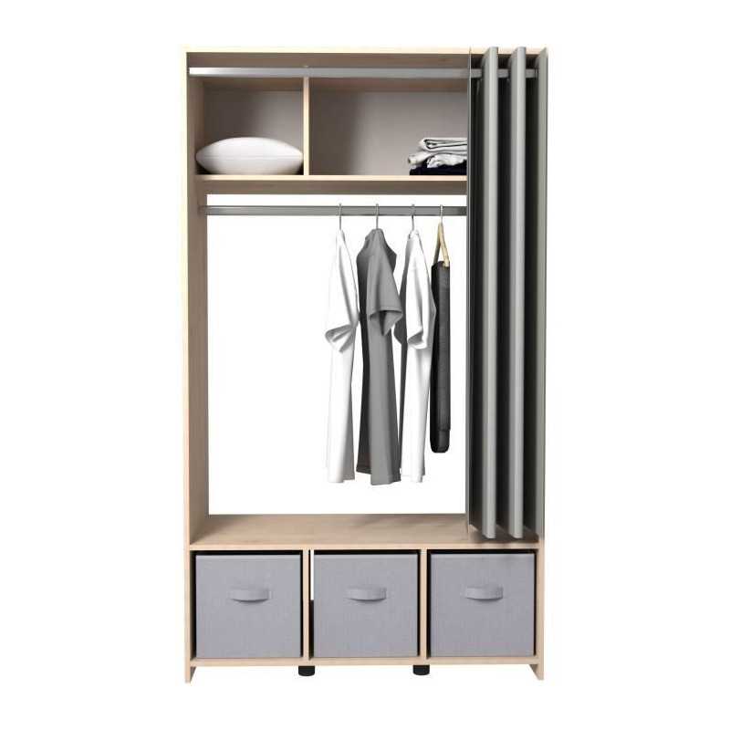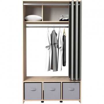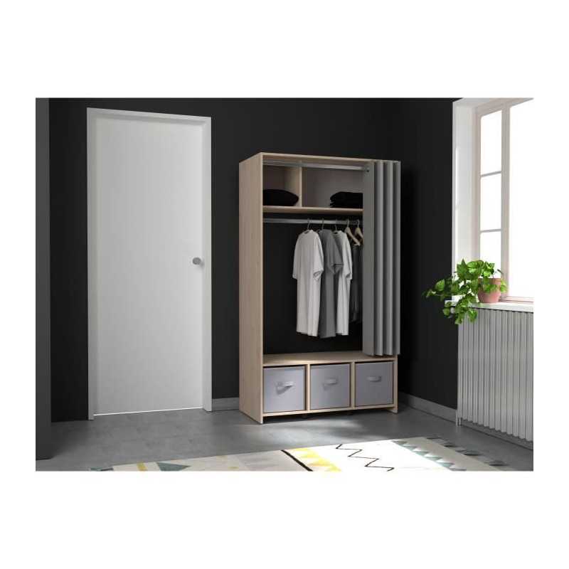 Kit dressing ARTIC avec rideau - Décor Chene et Blanc - 1...