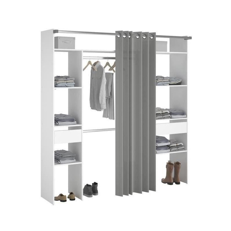 Kit dressing ARTIC avec rideau - Décor Blanc - 1 colonne...