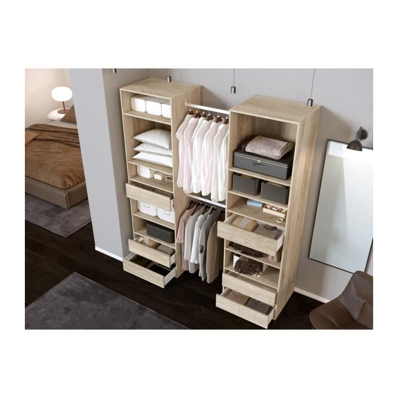 EKIPA Kit dressing avec rideau - Décor Chene et noir - 1...